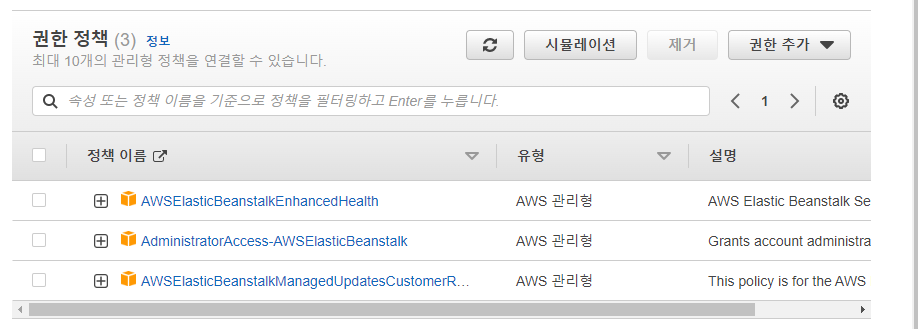 Elastic Beanstalk 에서 신규 웹 어플리케이션 생성시, 서비스 액세스 채우지 않거나 또는 적저한 IAM 역할과 권한 정책을 부여하지 않으면 발생한다.